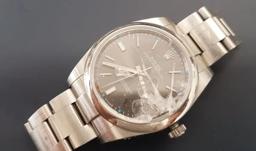 6) همیشه از وضعیت سالم بودن کریستال(شیشه) ساعت مطمئن بشوید. چون امکان دارد قطرات آب از ترک و یا شکستگی های شیشه ساعت وارد آن بشوند.