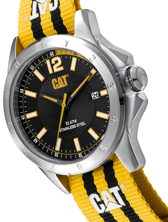 همیشه یکی از برندهای محبوب افرادی که استایل اسپورت دارند، کترپیلار بوده است. برند کترپیلار علاوه بر تولید محصولات صنعتی در عرصه‌ی ارائه‌ی ساعت هم دست داشته  و با  طراحی ساعت هایی جذاب با رنگ های مختلف( البته بیشتر دو رنگ زرد و مشکی، بعلت رنگ سازمانی خود برند) همیشه موفق بوده است. YW.141.67.137یکی از ساعت های مینیمالیستی کالکشن BIG TWIST 24 برند آمریکایی کترپیلار،با بند پارچه‌ای زرد و مشکی راه راه میباشد که این ترکیب رنگ خاص CAT در صفحه‌ی ساعت هم توسعه یافته است. کترپیلار با ارئه‌ی این ساعت، مدلهای کلاسیک این کالکشن را به‌روز کرده است.  بدنه‌  از استیل ضدزنگ ساخته شده و کت برای تنظیم این ساعت از سردسته‌ای با طراحی جدید استفاده نموده است. تا 100 متر در برابر آب مقاومت دارد و به علت وزن سبک خود ، هیچگاه مچ دست را هنگام استفاده طولانی مدت اذیت نمی کند. بند پارچه‌ای ساعت به شکل نیتو  NATO ساخته شده تا به عنوان یک بند اسپورت جذاب در طراحی زیبای ساعت نقشی اساسی داشته باشد. ایندکس های ساعت به صورت شب نما طراحی شده اند تا در تاریکی به راحتی زمان را بخوانید. موومنت این ساعت کوارتز ساخت کشور ژاپن میباشد که در موقعیت عدد3 روزشمار را ارئه می کند.